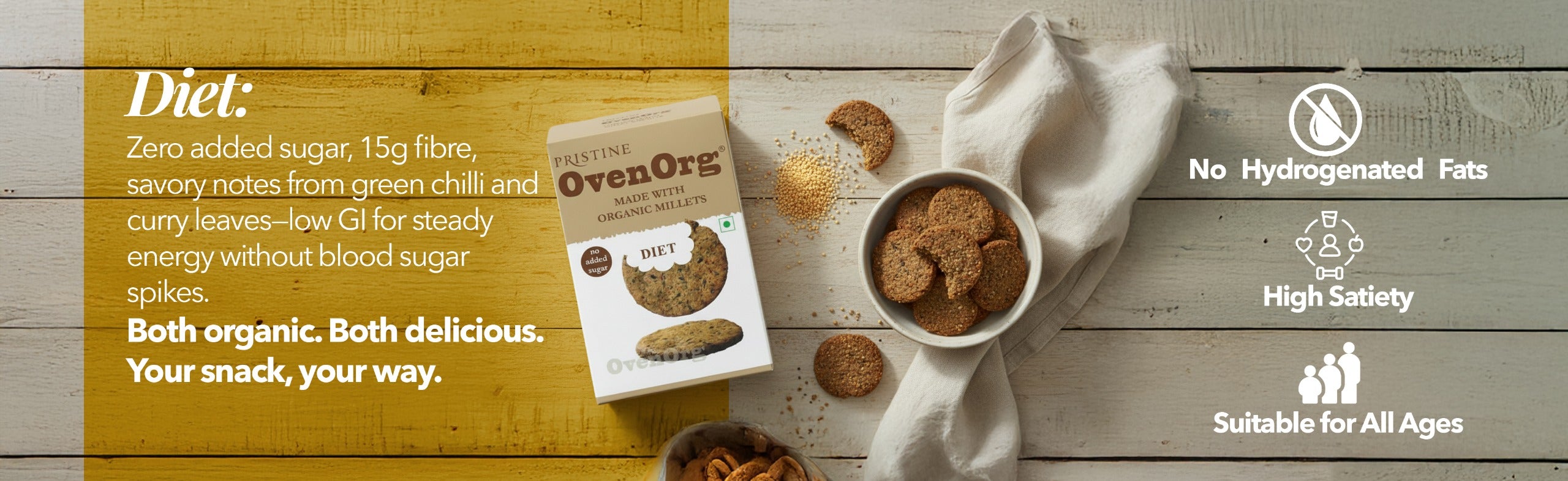 - Oven Org Diet biscuits diet variant is a healthy snack for sugar management.