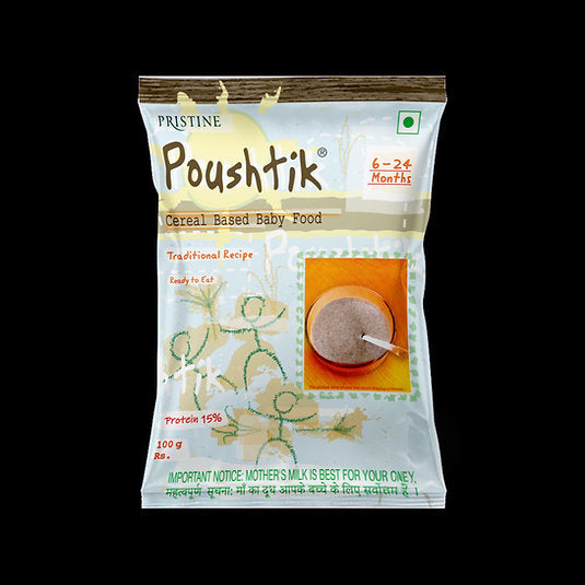 - Poushtik is made from naturally rich minimally processed cereals, and pulses added with enzymes that are convenient to feed to the baby. It is a cereal based baby food for infants from 6-24 months.